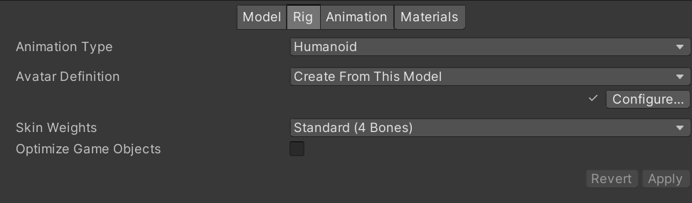 Rigtab set theAnimation TypetoHumanoid. - For the