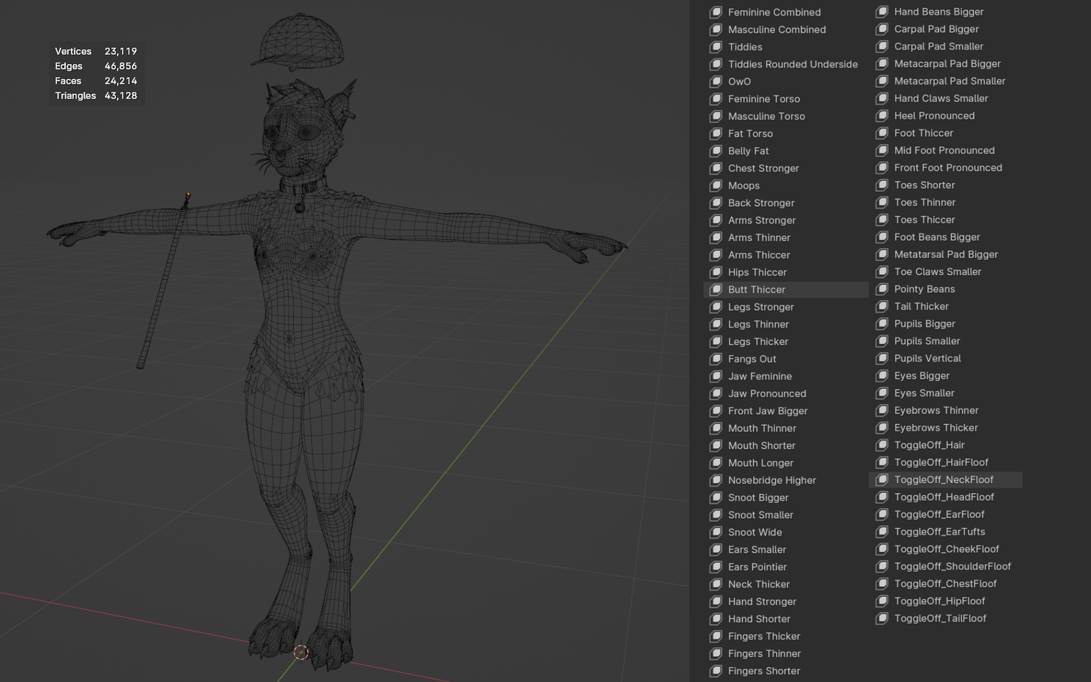 Radial Menu under Expressions ➜ Settings) - Lots of blendshapes for form adjustments
