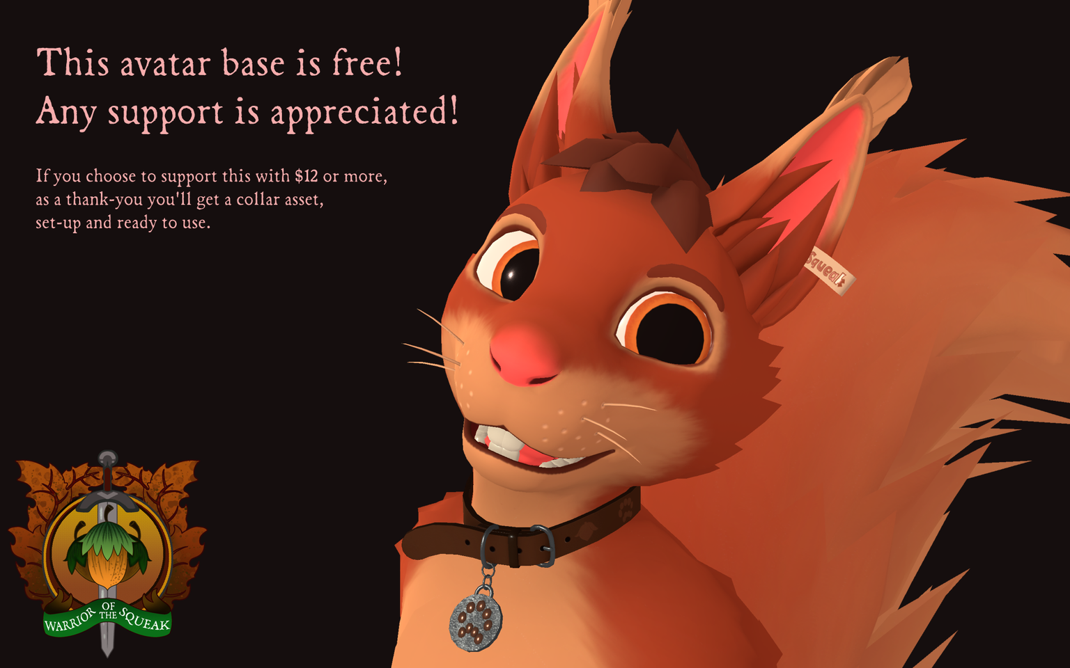 Warrior of the Squeak FREE smol squirrel avatar FREE Avatar for VRChat & VRM This mad Squirrel is on a quest to fight against non-alcoholic beer and bad framerates!
