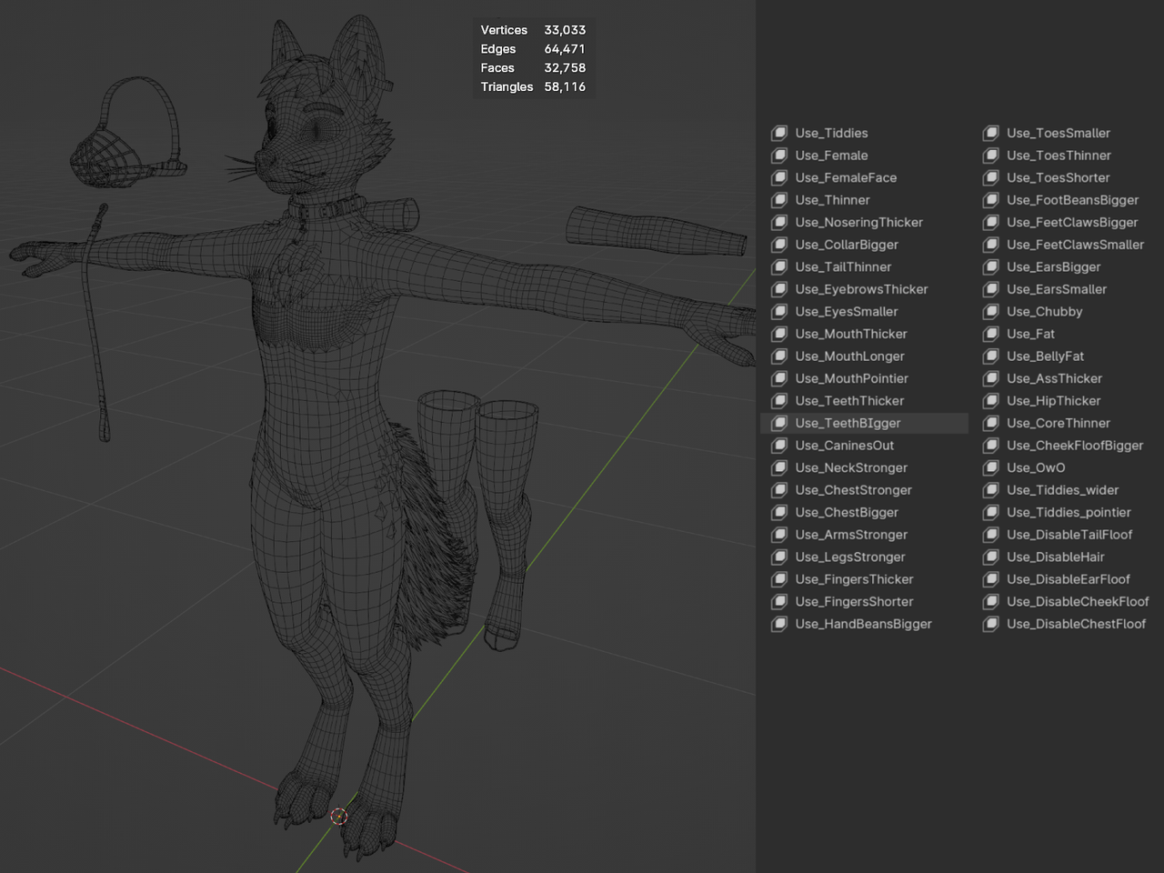 Radial Menu under Expressions ➜ Settings) - Lots of blendshapes for form adjustments